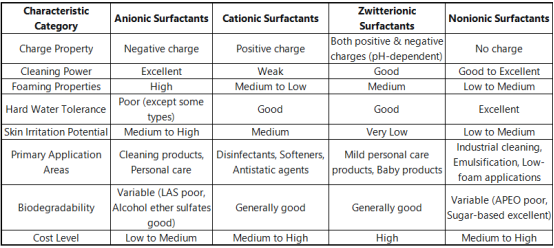 Choosing the ideal surfactant needs factor to consider of numerous aspects, including application demands, cost, environmental problems, and regulative requirements. The complying with table summarizes the crucial characteristics of the 4 major surfactant categories:
